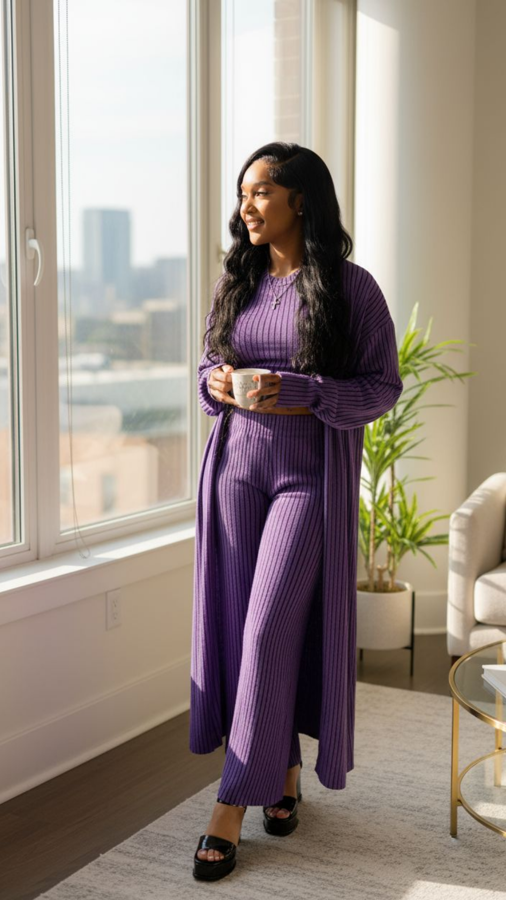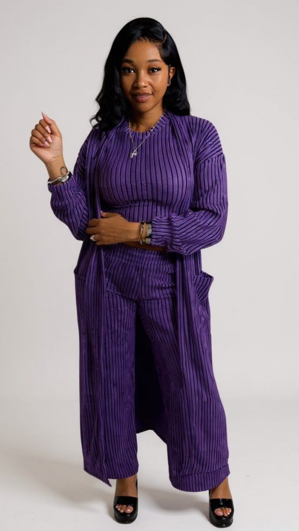 Mix and match your way to endless outfit possibilities with this fun three-piece set! Layer the crinkle-textured open cardigan with dramatic black stripes and convenient side slits over the sleeveless crop top featuring a classic crew neck. The textured fabric adds dimension and movement, while the cropped silhouette keeps things modern and fresh. Perfect for creating multiple looks from one versatile collection—dress it up or keep it casual, the choice is yours!